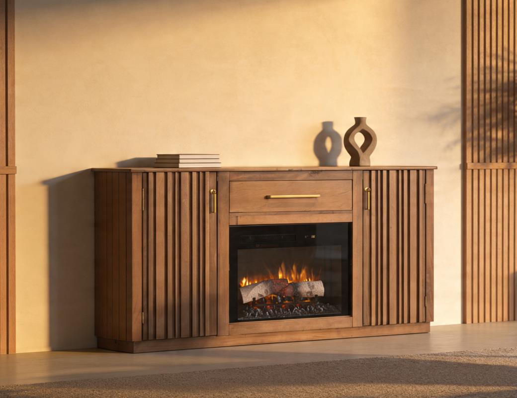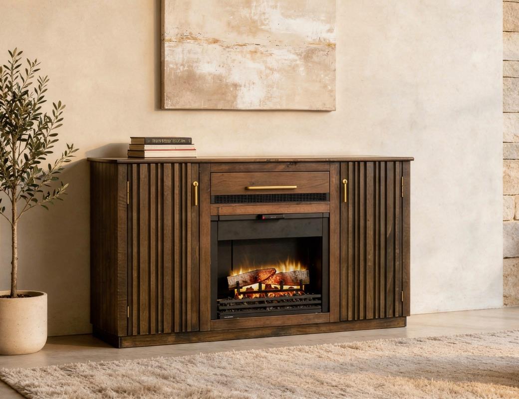MezquiteIntroducing the Mezquite Electric Fireplace: This exquisite piece is meticulously handcrafted from sustainable mango wood. Its light distressed finish gracefully accentuates the natural richness of the wood grain, while its captivating and eclectic design elevates it to a true statement piece that can effortlessly enhance the ambiance of any room in your home.